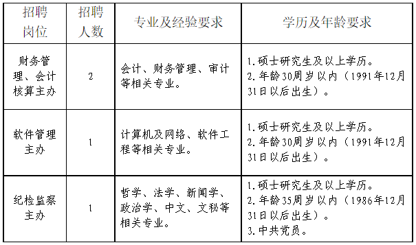 3.紀檢監(jiān)察室紀檢監(jiān)察主辦1人。